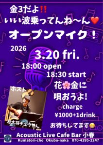 金3だよ❗️いい波のってんね〜ん❗️オープンマイク